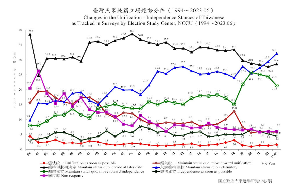 The people of Taiwan do not dispute the legitimacy of the People’s Republic of China (PRC), and to varying degrees identify with many cultural and linguistic elements the two sides have in common. And yet, Taiwan is also idiosyncratic, the result of multifarious external influences which it has absorbed, redefined, and made its own over centuries. This, among other things, includes five decades of being part of Japan and, in the late 1980s, the embrace of liberalism and democracy. While Taiwan shares cultural and linguistic traits with China, and does business with it, polls have consistently shown that a very small number of people in Taiwan — 1.6% — whether they are from the “green” (Taiwan-centric) or “blue” (closer affinity for the ROC, greater willingness to deal with China) agree to immediate unification with China (5.8% believe that Taiwan should move in that direction at a later point). The great majority — supporters of Taiwan independence or those who define themselves are citizens of the ROC — are united in the desire for their country to remain free and democratic, and most do so by embracing the “status quo,” or de facto independence.